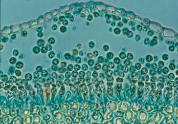 These blisters contain innumerable unicellular mitosporangia