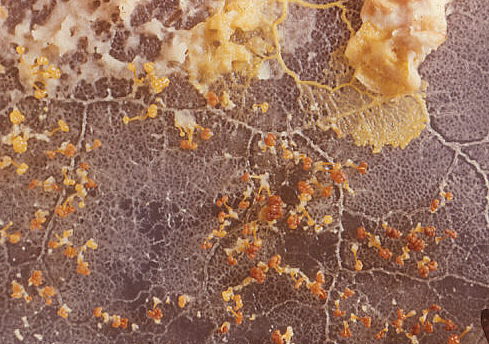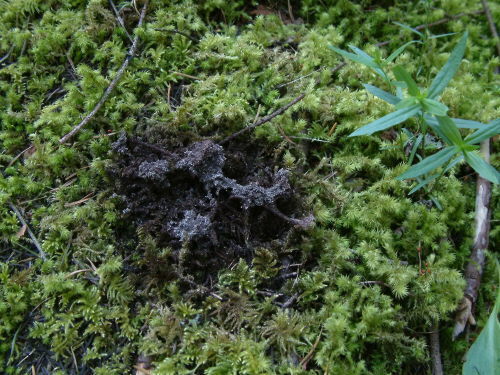 Then common Fuligo septica (below) and its aethalium also belong to the Physarales. The peridium contains lime, and the spores are very dark