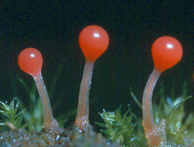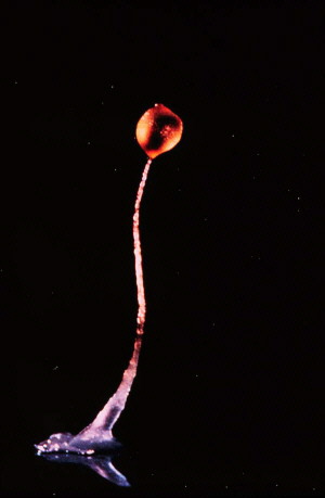 First let me elaborate a little on the definition of fungi given earlier. Fungi (whether chromistan or eumycotan) are heterotrophic (non-photosynthesizing) eukaryotes that absorb their food, typically at the many growing points of their rather diffuse, indefinite `body' (often called a thallus or mycelium), which is made up of fine branching tubes called hyphae. The wall of the tubes is mainly composed of chitin or cellulose, and within this wall the cytoplasm and nuclei live and move, protected from the outside world, but able to explore small areas of it inside their apically extending, microscopic, hyphal tunnels, and much larger areas by means of their detachable reproductive units called spores. But before I discuss real fungi, four 'outsider' phyla must be mentioned. These are the so-called 'slime-moulds,' the inappropriately named Myxomycota, Acrasiomycota , Labyrinthulomycota and Plasmodiophoromycota. (because none of them are fungi)Here's a short quotation from a fascinating essay, 'Either or Neither', by David Quammen: