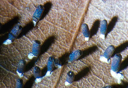 (3) The pseudoaethalium (which means false aethalium). This is a mass of individual sporangia, with individual peridia, but developing in a tight cluster. Pseudoaethalia are usually sessile.