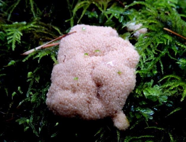 This is the only one of these four non-fungal phyla you are likely to find if you go out looking for fungi in Autumn. The macroscopic, slimy, amoeboid plasmodium (the somatic or assimilative phase of the organism), populated by diploid nuclei, oozes around in the soil or in